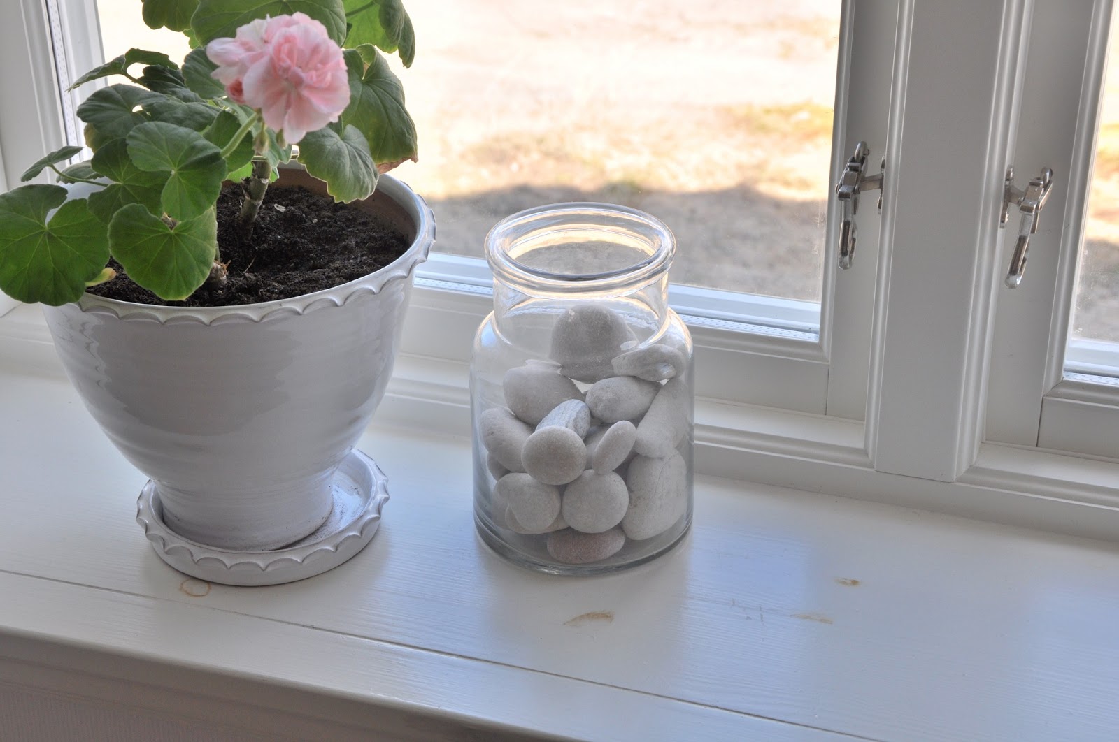 I fönstret har vi stenar från våra utlandssemestrar i Grekland och Cypern. Som jag längtar efter en resa just nu!! Vill till någon europeisk storstad, som t.ex. Rom eller Paris. Tänk att gå runt att strosa i mysiga butiker och se på alla vackra byggnader… Längtar även tillbaka till Cypern… Vi får hoppas på lite mer sol och värme här hemma!