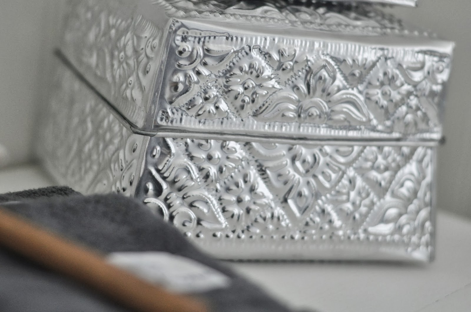 Jag väntar just nu på att en stege ska anlända (som badhanddukarna ska hängas på) och att jag ska sätta upp ett par spikar till handdukarna. Sedan ska en enkel rulluppgardin fästas i fönstret.