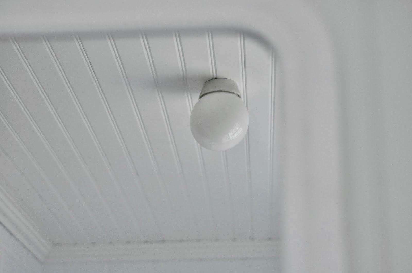 Det enda som är kvar från det tidigare badrummet är taklampan. Den har en sådan fin porslinssockel, kul att ha något minne kvar som dess utom passar bra in.