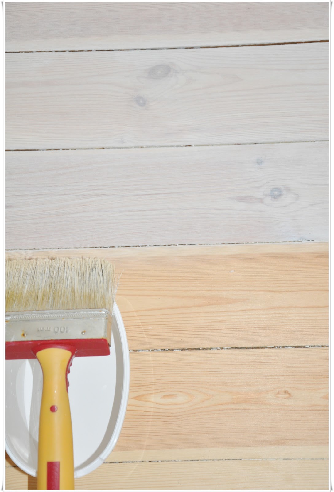 Hoppas att ni har en bra helg! I måndags kom som sagt golvsliparen hit! Golvet som såg alldeles gräsligt ut (se den hemska bilden) blev äntligen slipat! Det var meningen att golvgubben skulle behandla golvet, det slutade tyvärr med en omslipning och att jag själv får göra det istället… Tur att jag har produkter kvar från alla golv på övervåningen!