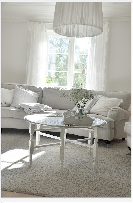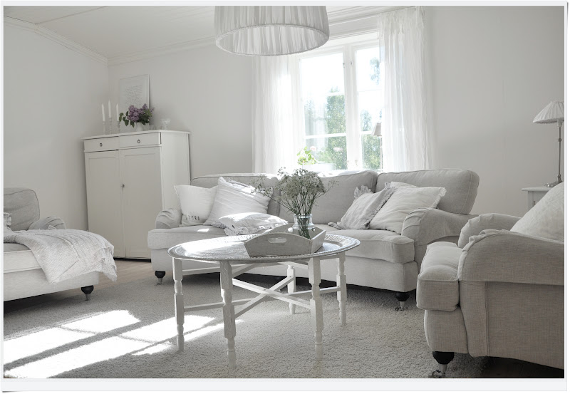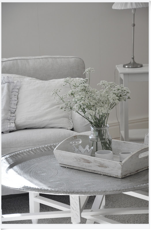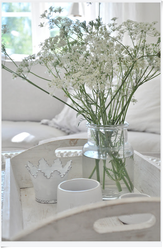 Har sommarpiffat vardagsrummet lite! Tagit in hundkex och syren. Älskar de vita hundkexen, just nu växer de över allt, så fint!