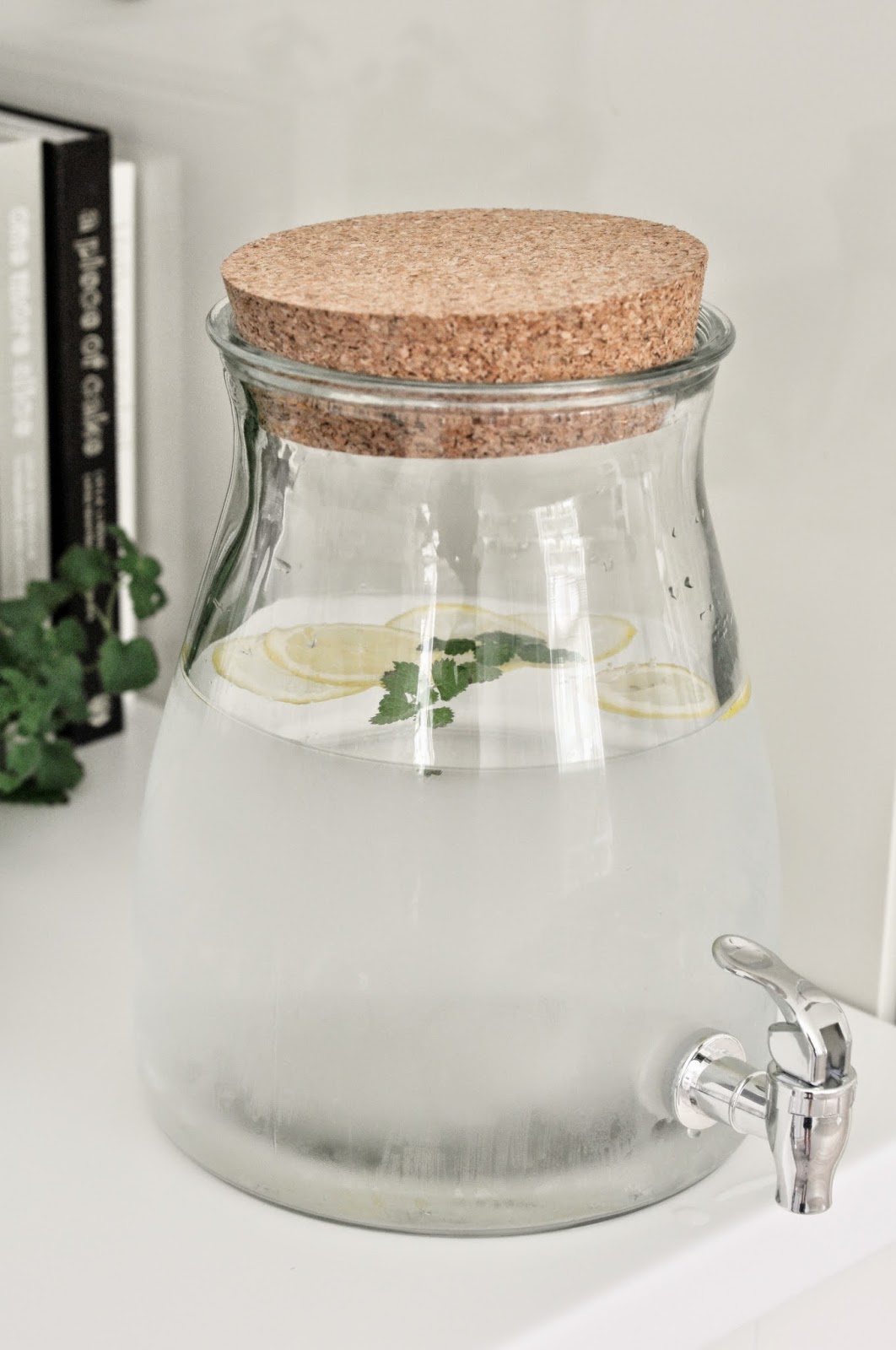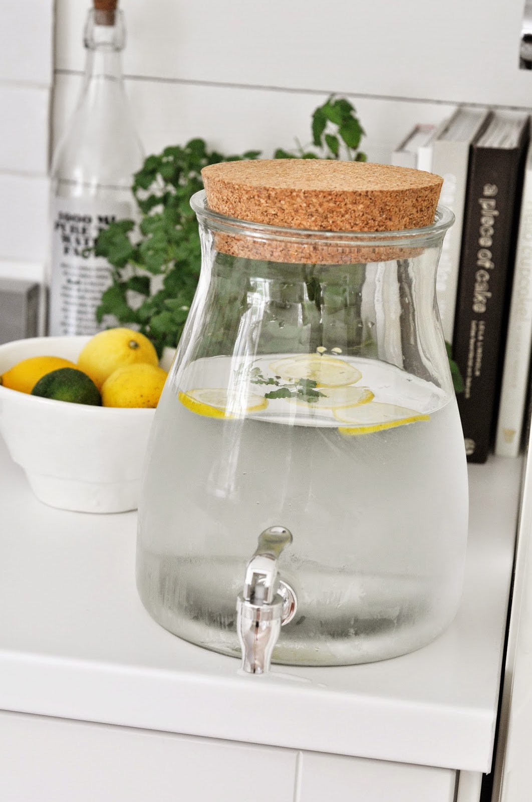 Tänkte visa vårt senaste tillskott i köket. Denna vattenkaraff är enligt mig alldeles underbar då den är både vacker och praktisk. Nu laddar vi vatten på morgonen och njuter sedan av smaskig lemonad hela dagen lång. Våra tjejer tycker dess utom att det är roligt att fylla på glasen. Därefter dricker de genast upp allt för att fylla på igen. Ett bra trick för att få dem att dricka mycket vatten!