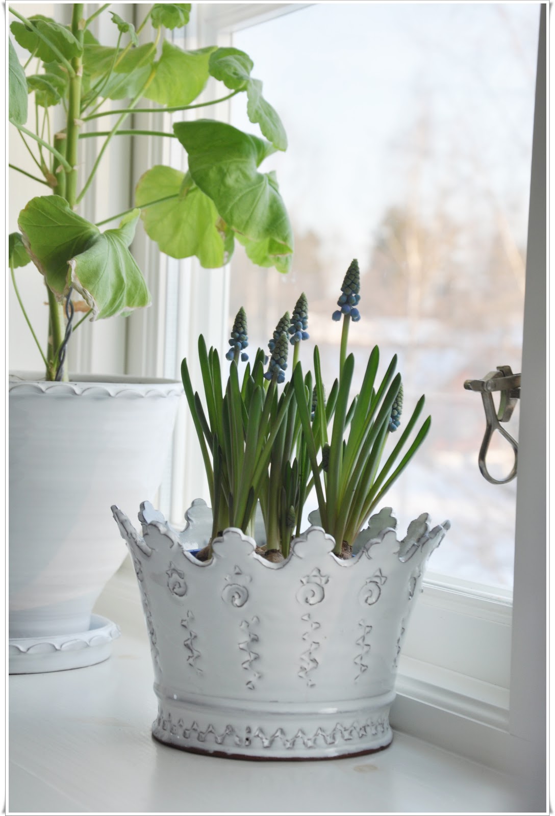 Helgens finväder lockade fram vårkänslor hos mig. Älskar dessa vinterdagar! Måste dock medge att jag längtar till våren! Har därför köpt hem pärlhyasinter, tycker att de är så fina och enkla!